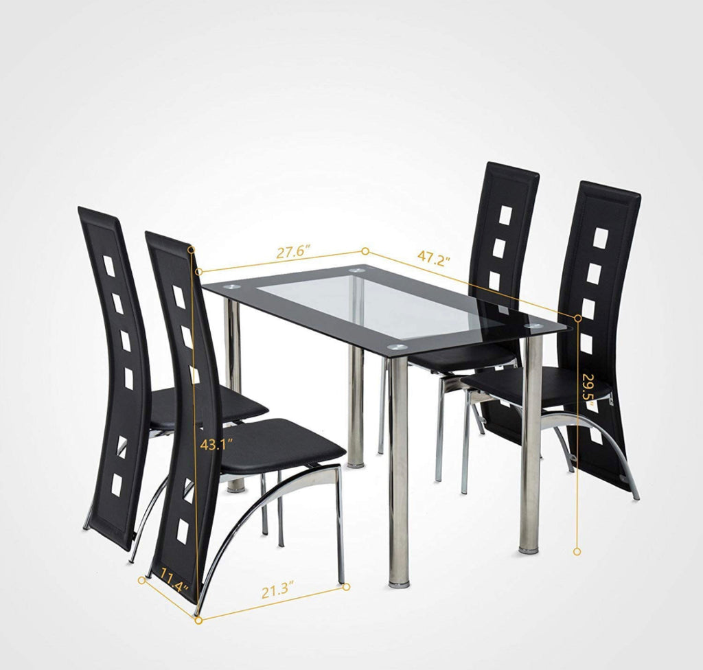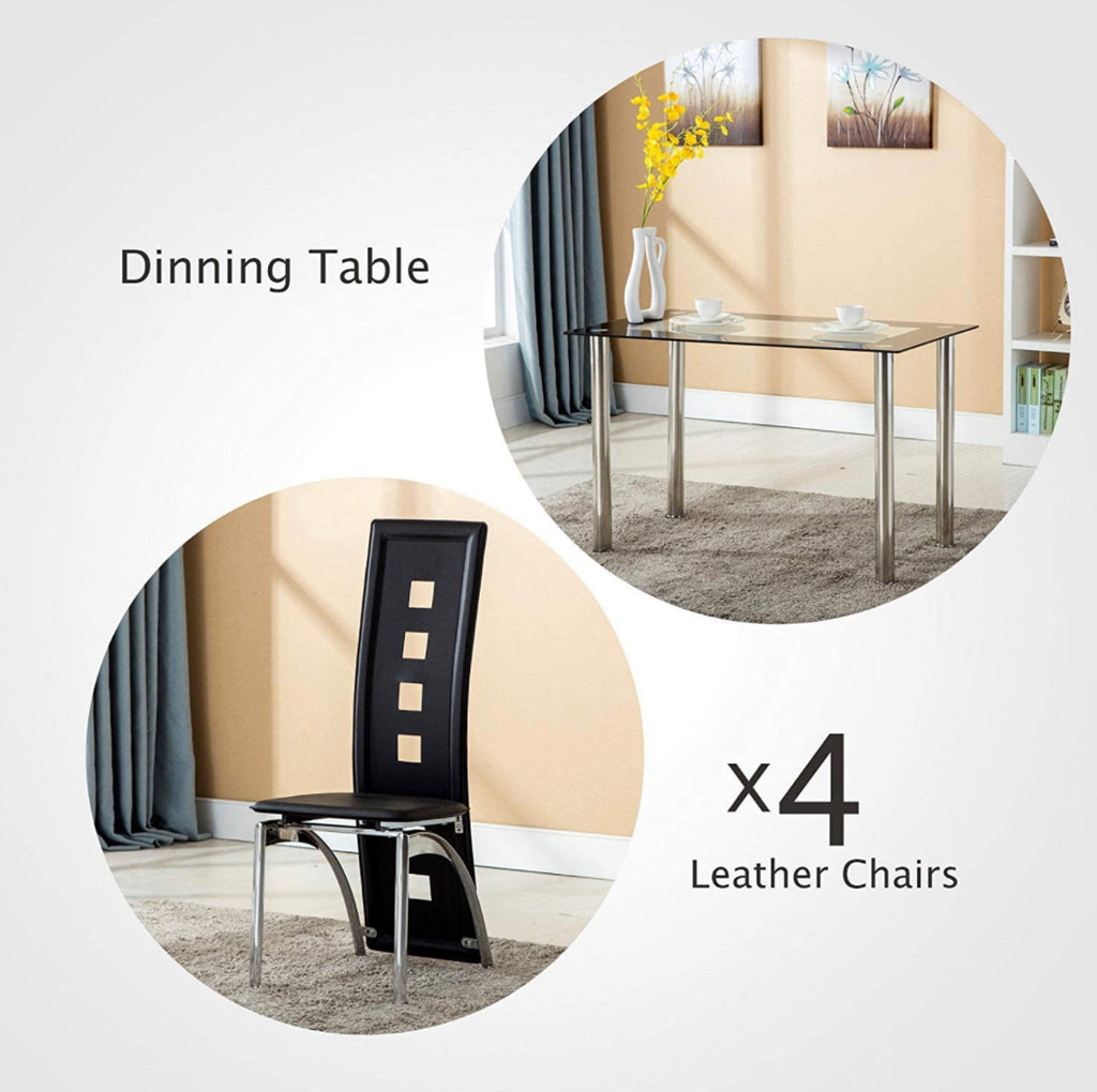 Glass Dining Table Set 4 Chairs Room Kitchen Breakfast Furniture. 5 PC Set