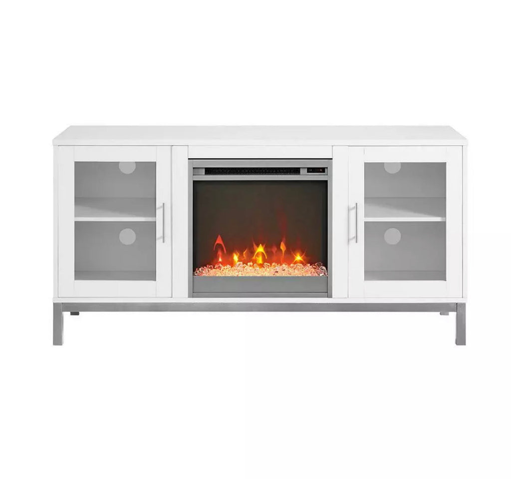 Avenue Wood Fireplace TV Console with Metal Legs - White. 52"